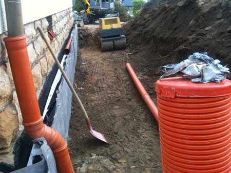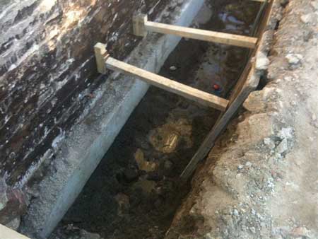 Sicherung eines Hauses nach der Freilegung durch Bauherrn in Eigenleistung, einschl. Abdichtung, Entwässerung und Dämmung sowie Rückverfüllung.